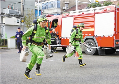 日前,庵东镇联合前湾新区消防救援大队开展2022年度微型消防站技能大比武,此次竞赛共计39支参赛队伍271名微型消防站队员参加,分别参与百米负重、一人两带、一人三带、原地佩戴空呼、机动泵打靶、水枪阵地设置操六个比赛项目。